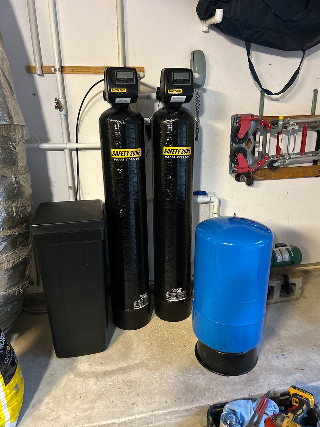 Next, we installed a new iron/sulfur filtration unit and water softener, including the brine tank with salt added as required. Proper discharge lines were installed for both systems to ensure safe and efficient operation.